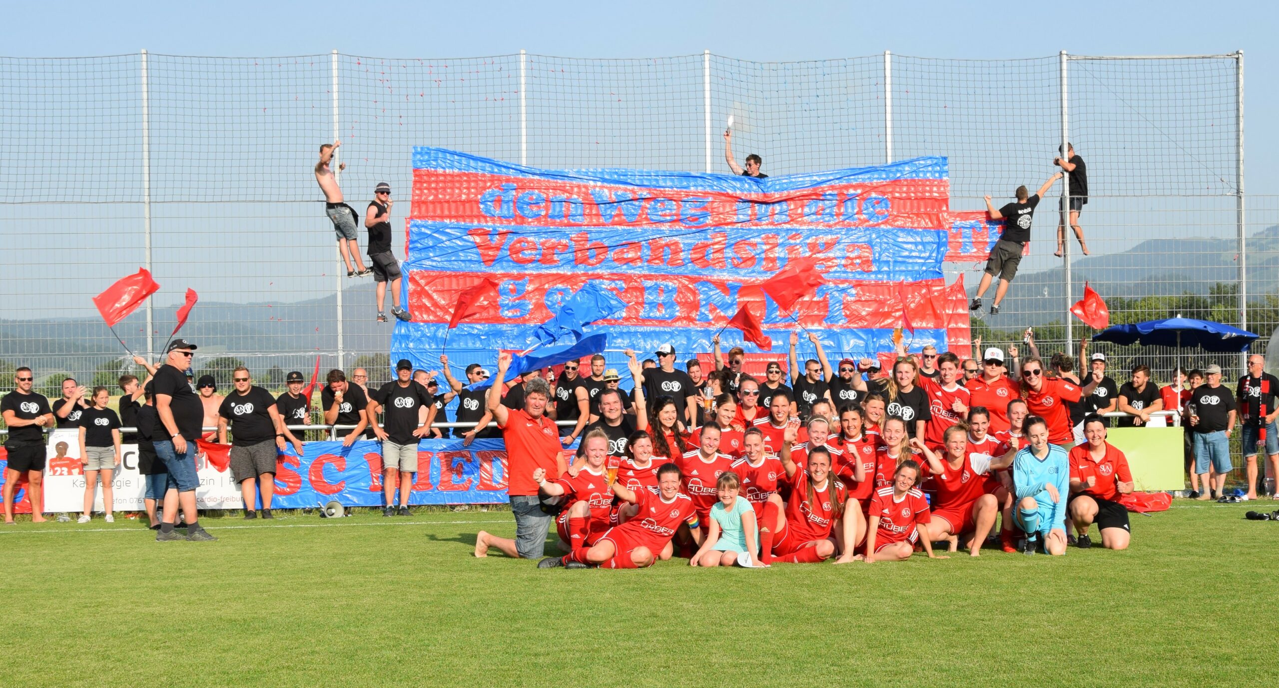 Vorständin Jenniffer Eckert begrüßt Bezirksvorsitzende Katha Kessler und erhält die Spielfreigabe für unseren neuerrichteten Kunstrasen